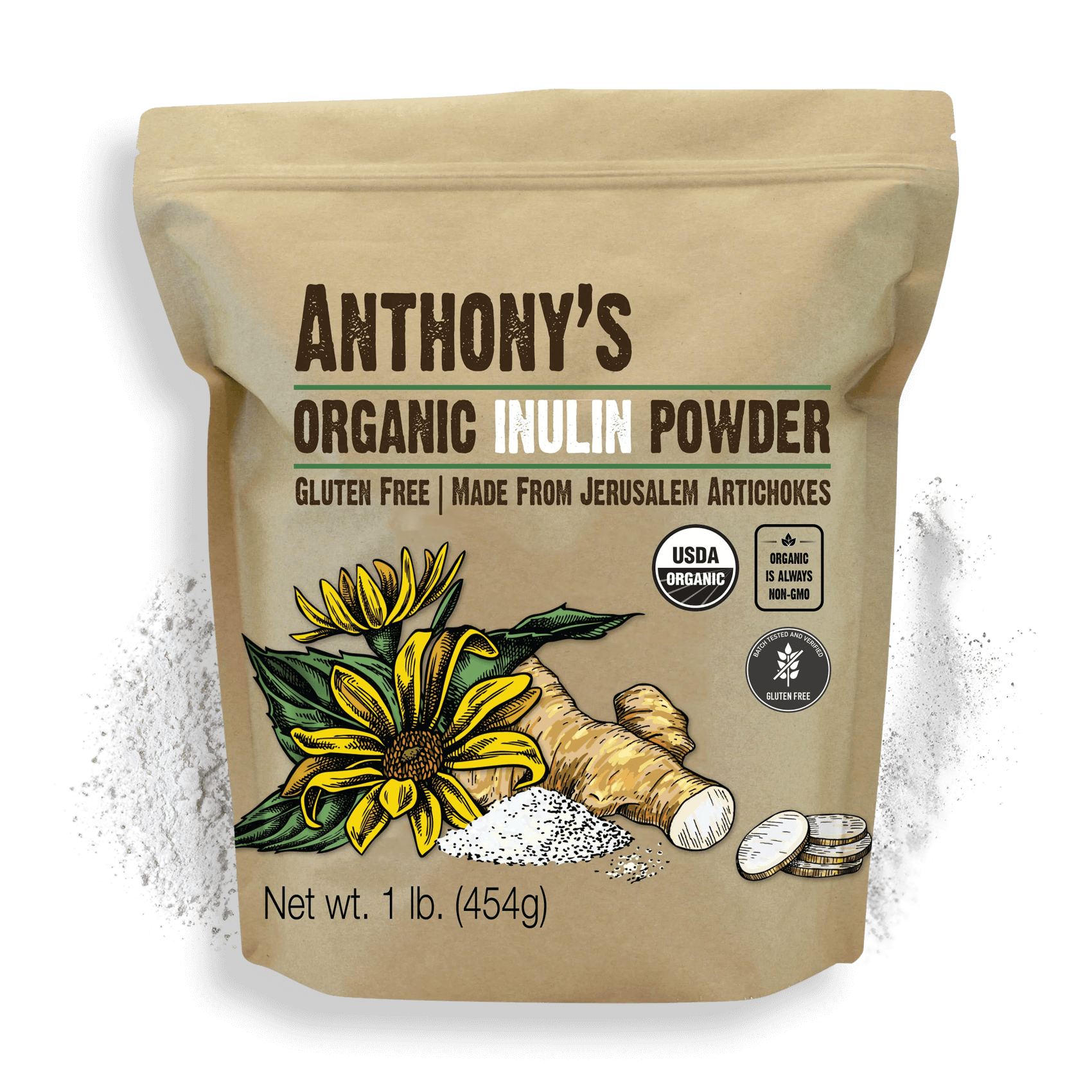 Anthony’s Inulin Powder is Organic, Gluten Free, Non-GMO, Vegan friendly, and contains no fillers, colors or additives.