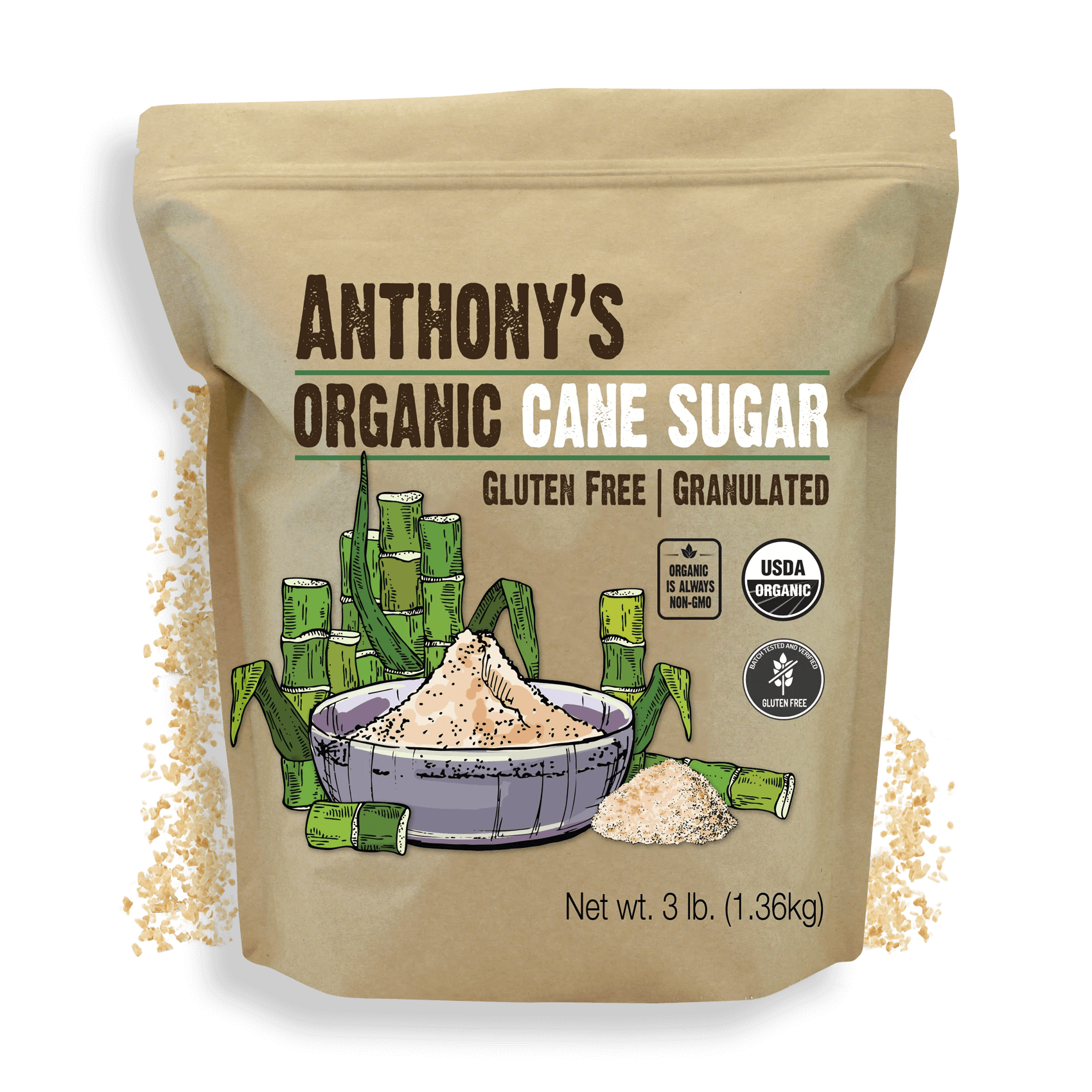 Anthony’s Cane Sugar is an extremely high quality sweetener. It’s organic so you don’t have to worry about toxic pesticides. It has a rich, sweet taste and is perfect for baking, for making homemade caramel, or to sweeten dressings and marinades. Use in almost any recipe that calls for a sweetener of some kind.