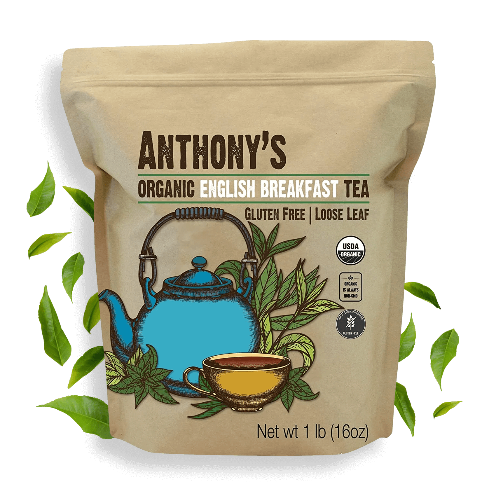 Anthony’s English Breakfast Tea is Organic, Gluten Free, Non-GMO, Non-Irradiated, Caffeinated, and Loose Leaf!